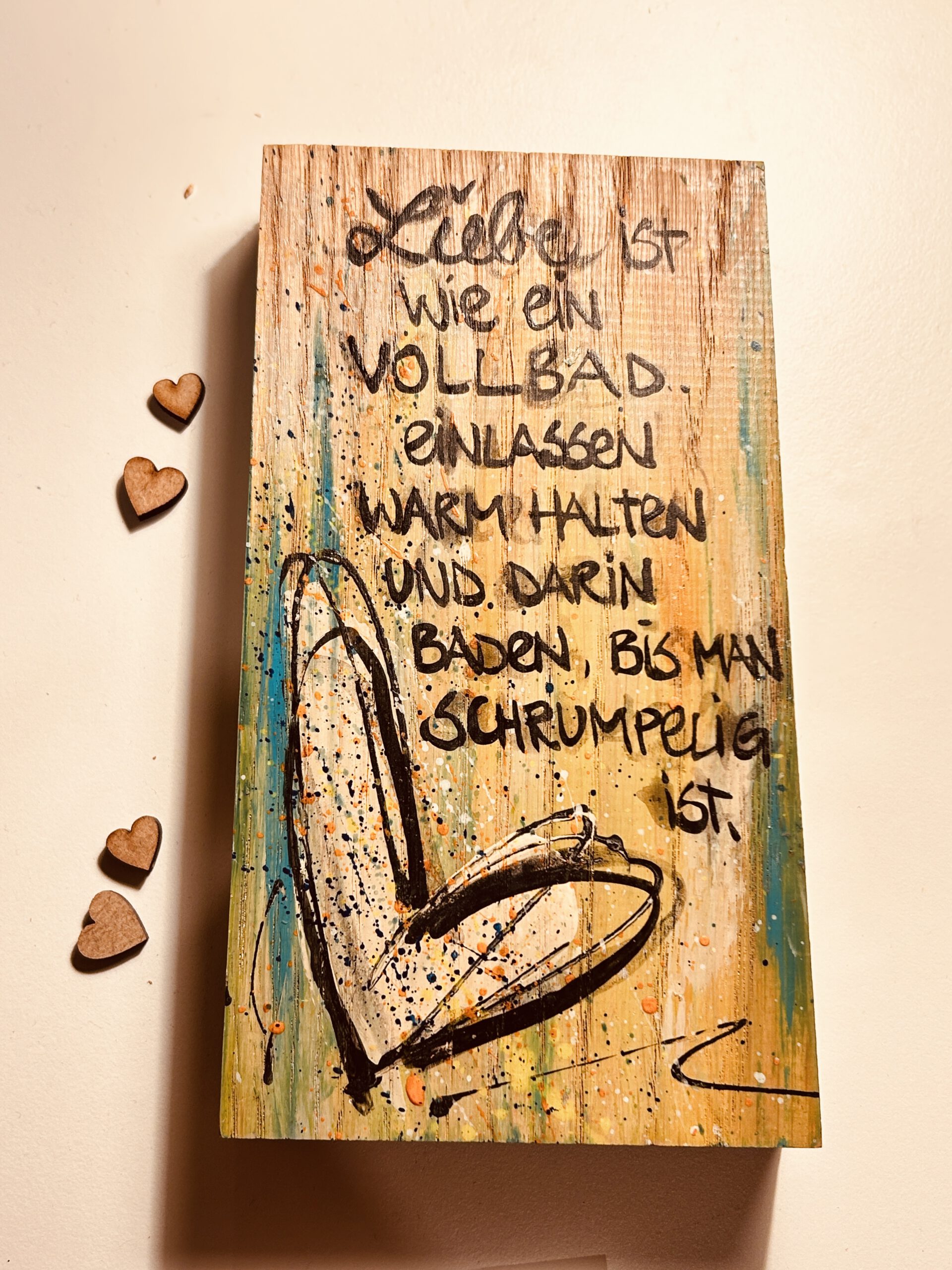 Spruch: „Liebe ist wie ein Vollbad. einlassen warm halten und darin Baden, bis man schrumpelig ist:“